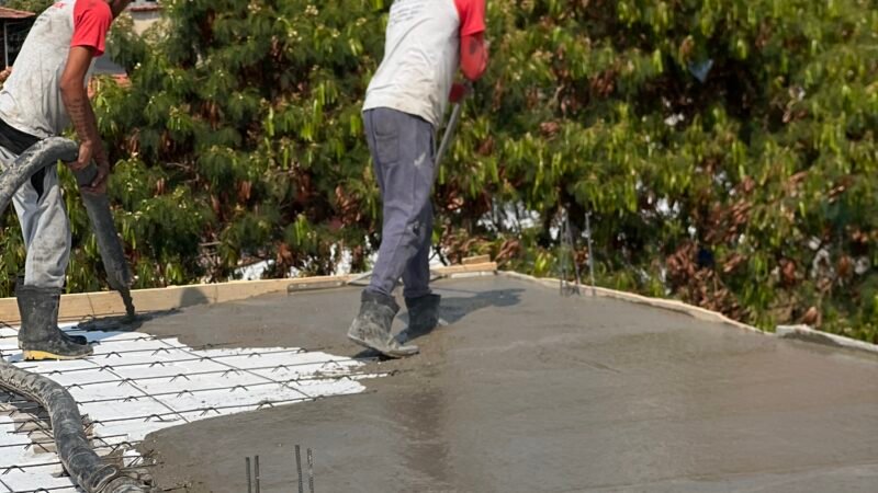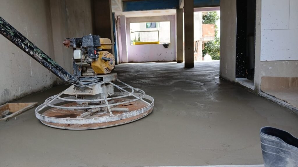 Sim, com preparação e acabamento adequado, é ideal para pátios, garagens e calçadas.